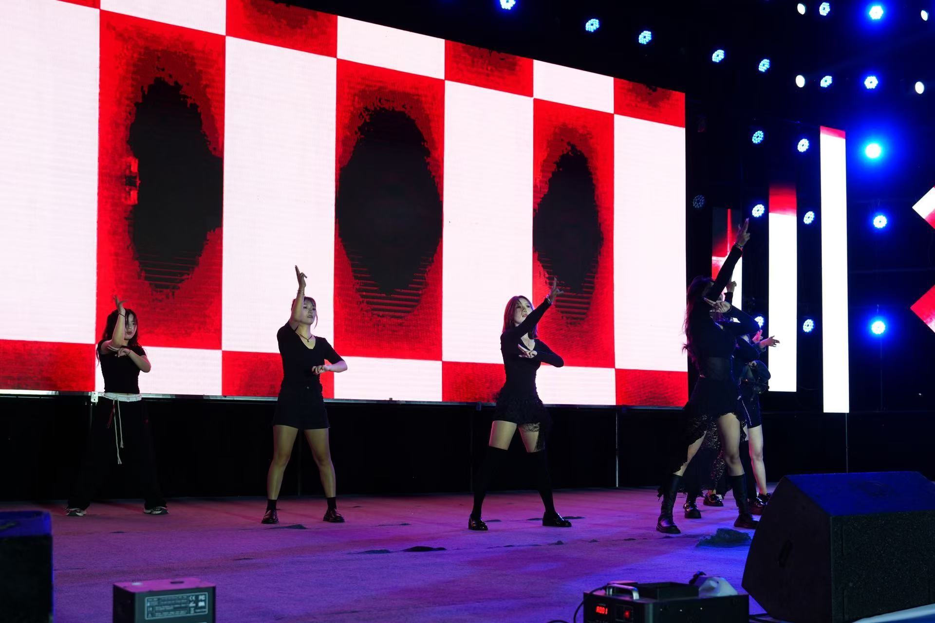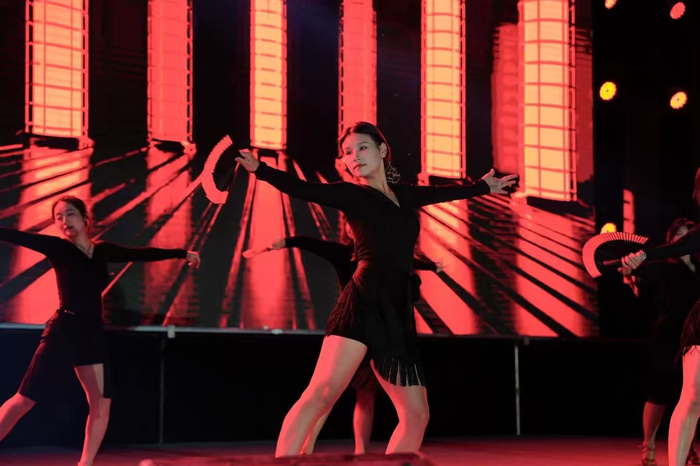 晚会在开场舞《小城夏天》的欢快旋律中拉开序幕,表演者们用青春活力的舞姿点燃了全场观众的热情。精彩节目轮番上演,歌曲《请到信阳来》以其悠扬的旋律,向新生们发出了热情的邀约;《海阔天空》《没关系》则用激昂、励志的歌词,传递积极向上的青春力量;拉丁舞《执扇》的表演者们身姿婀娜,将热情奔放与东方韵味完美融合;民族舞《九洲同—缠》更是以优美的舞姿和独特的编排,展现出中华各民族文化的绚丽多彩……舞台上的灯光随着舞蹈动作流转变幻,时而如繁星点点勾勒出舞者的灵动身影,时而化作绚烂彩虹映照出服饰的精美纹样,台下观众沉浸在这场视觉与文化的盛宴中,不时爆发出阵阵热烈的掌声与喝彩声。