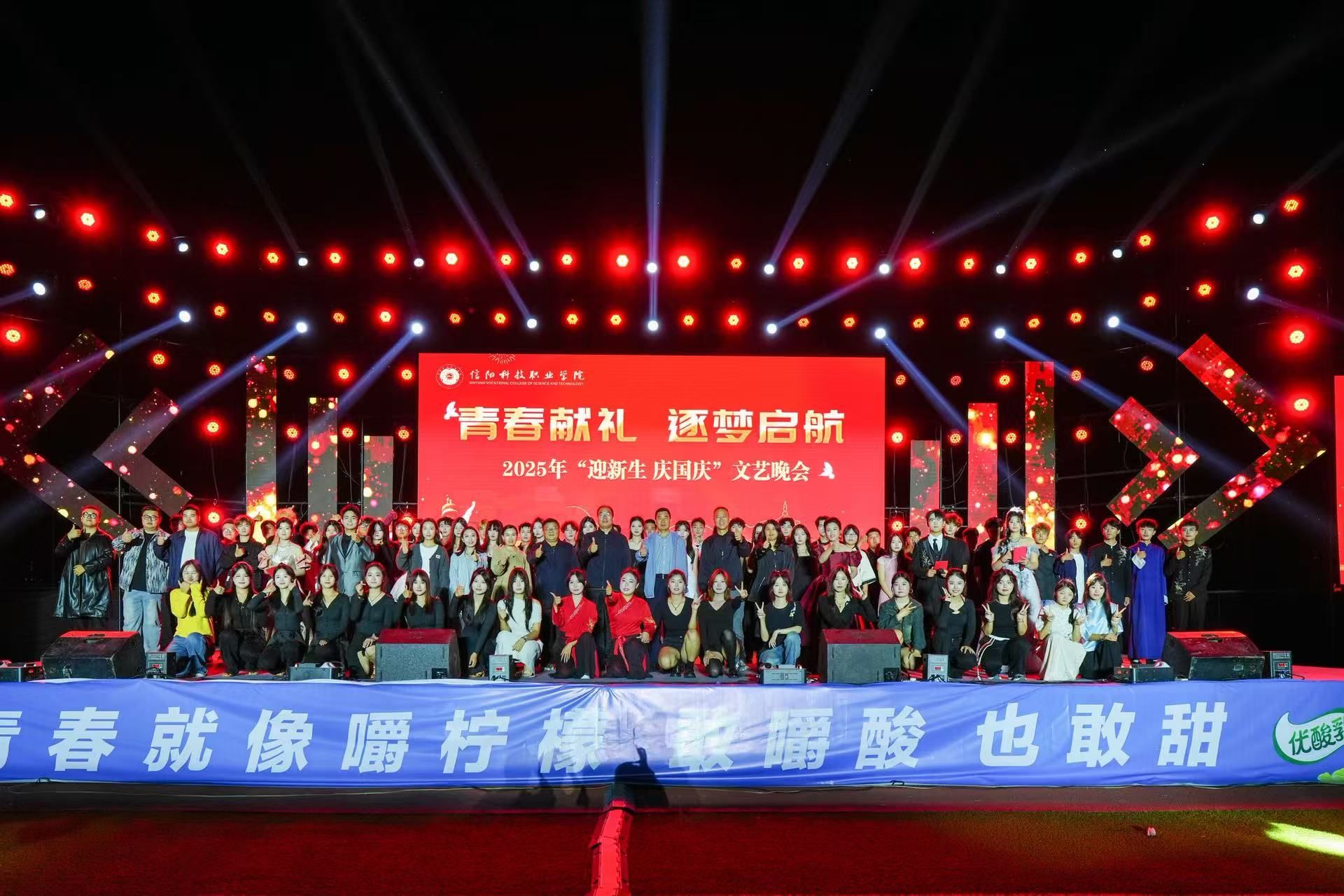 华灯初上,灯火辉煌。9月24日晚,我校在体育场隆重举行以“青春献礼,逐梦启航”2025年“迎新生、庆国庆”文艺晚会,用一场青春洋溢的视听盛宴,为新中国华诞献上最诚挚的祝福。副校长张欣,校党委副书记、副校长张甲楠,副校长谢语蔚等校领导亲临现场,与二级学院院长、各部门负责人、专家教授、教师代表以及4000余名学生一同观看演出。