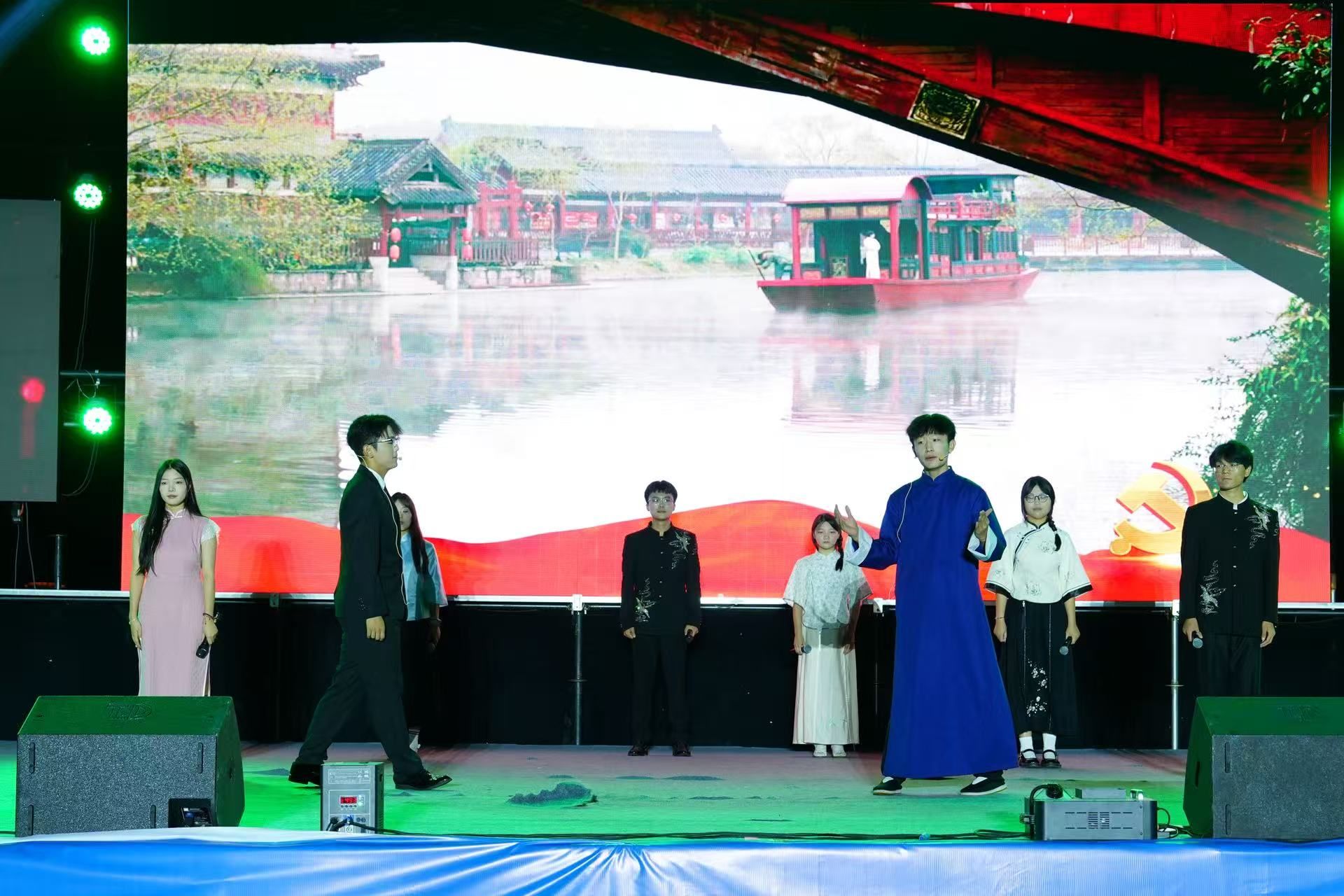 教师联唱《夏天的风》《东风破》《天后》《我是真的爱你》将晚会气氛推向高潮。由新生带来的武术表演《武艺乾坤》刚劲有力,表演者们的一招一式都展现出中华武术的博大精深和坚韧不拔的精神。二胡齐奏《赛马》旋律悠扬动听,仿佛将观众带入了广袤的草原,感受着万马奔腾的壮阔景象。说唱《仁义茶楼》充满现代潮流气息;走秀《Poker Face》与爵士舞《baby monster》则展现了时尚与个性的完美结合。歌曲《谁》以其细腻的歌词和动人的旋律,诉说着对未知的探寻和对生活的思考。朗诵《红船》将观众带回到了那段波澜壮阔的历史岁月,让大家深刻感受到革命先辈们的坚定信念和不怕牺牲精神。歌曲《天地龙鳞》以宏大的叙事和豪迈的旋律,展现出中华文化的深厚底蕴和磅礴气势。这些节目各具特色,充分展示了现代艺术的多元魅力。