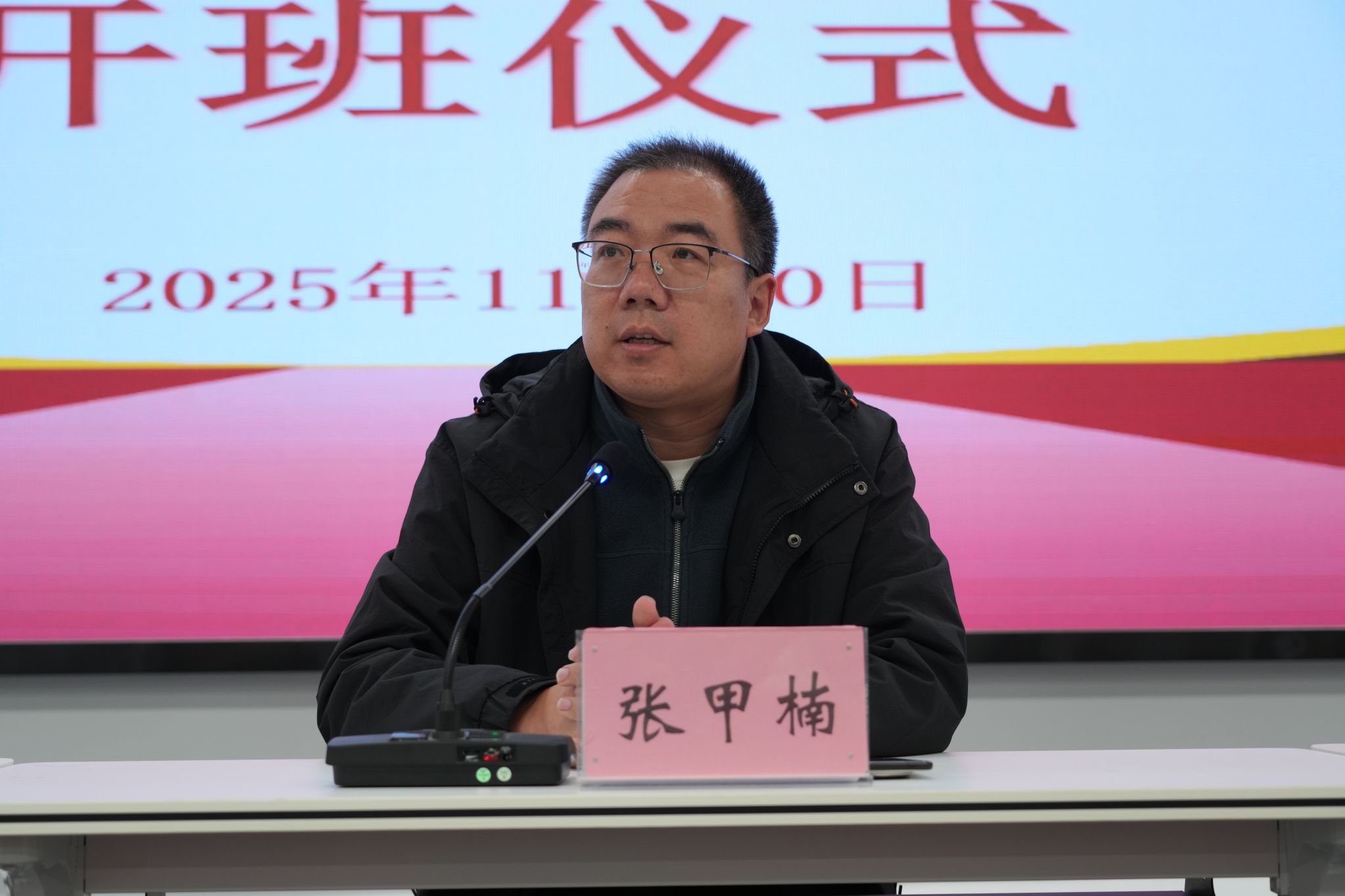 为深入贯彻落实党的二十大和二十届三中、四中全会精神,从严把好党员发展“入口关”与“质量关”,扎实推动新时代党员队伍建设和教育管理提质增效,11月10日下午,我校在2号楼105报告厅隆重举行2025年下半年入党积极分子、党员发展对象培训班开班仪式暨首场专题党课。校党委副书记、副校长张甲楠出席仪式并讲话,学校相关部门负责人、全体入党积极分子、党员发展对象参加活动。党委学工部科长牛帅主持会议。