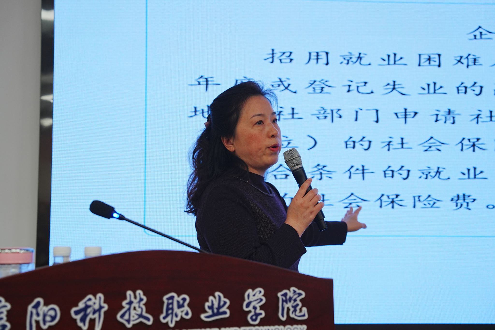 随后,活动进入主旨报告环节。主讲嘉宾、平桥区区委人才事务中心副主任、区人社局就业创业服务中心主任余春为在场师生带来了题为 《搭建就业新桥梁,助力择业奔远方》 的精彩报告。