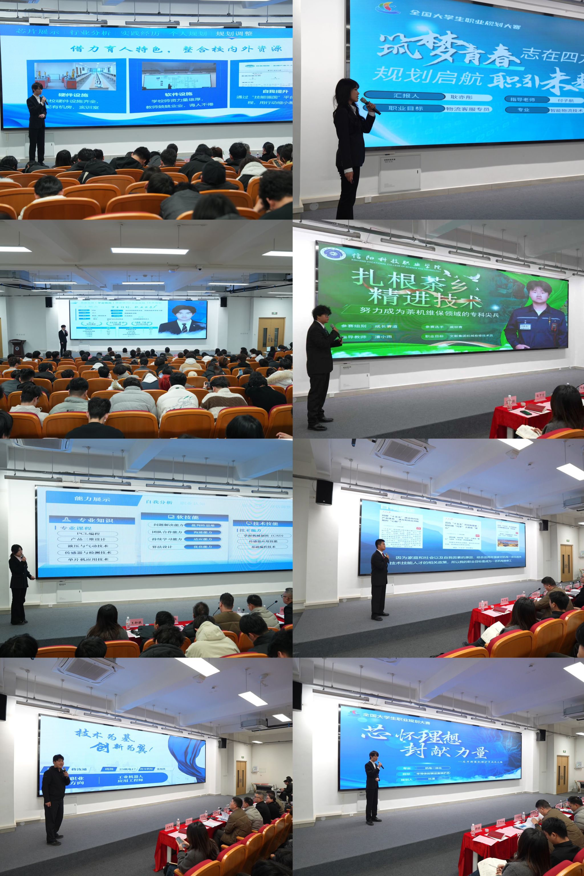 12 月 11 日,我校 2025 年大学生职业规划大赛决赛成功举办。大赛特别邀请信阳艺术职业学院招生就业办公室主任朱建伟,信阳职业技术学院河南省大学生职业规划大赛金奖指导教师陈晓丽,信阳学院招生就业处教师、河南省创新大赛一等奖项目指导教师张恩培,科大讯飞高级人工智能架构工程师李晓峰,西亚和美商业股份有限公司招聘经理闵龙飞担任评委,特邀信阳航空职业学院河南省大学生职业规划大赛省奖指导教师韩子昊及信阳航空职业学院就创中心就业创业培训指导教师宋岳担任大赛观察员。校党委副书记、副校长张甲楠出席,招生就业处处长王轩轶,各二级学院大赛负责人、各指导教师及学生代表到场观摩。