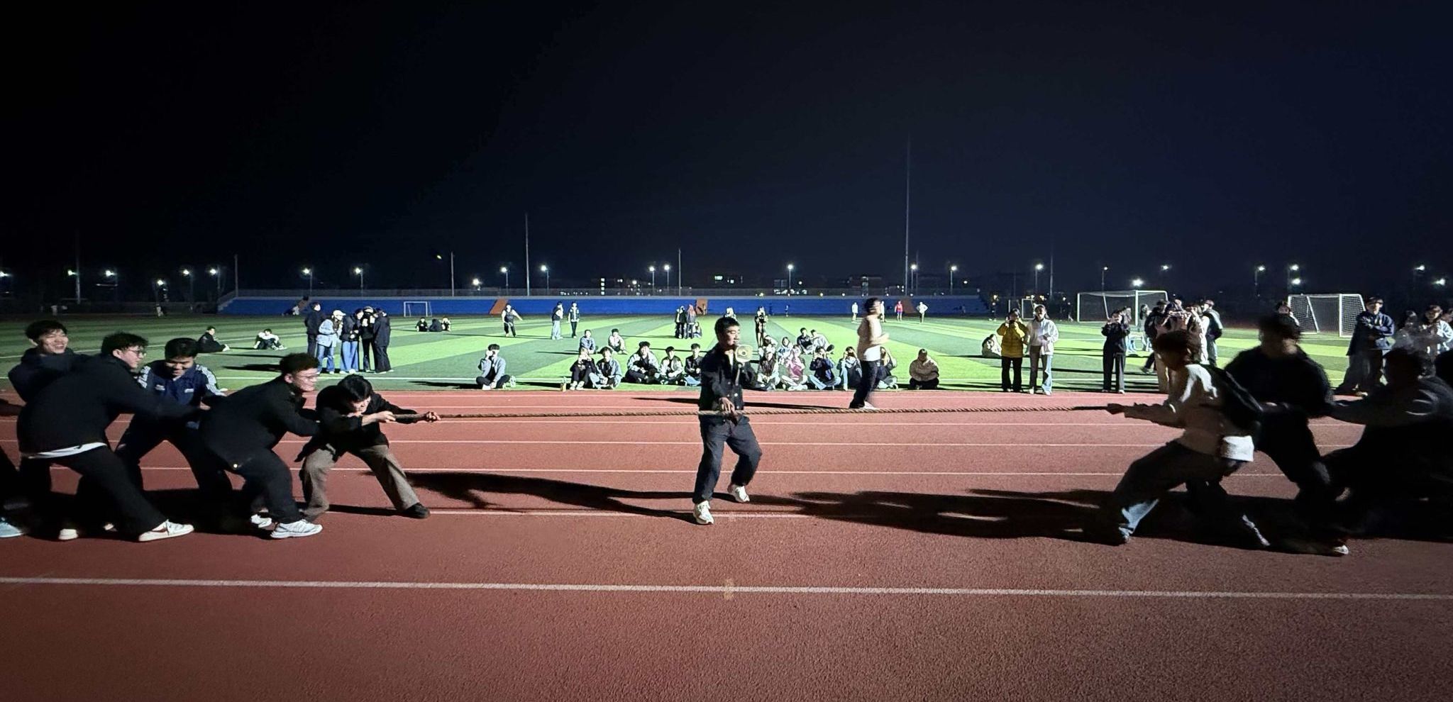 为丰富校园文化生活,增强学生身体素质与团队协作意识,营造积极向上、奋勇拼搏的校园氛围,人工智能学院于2026年3月26日晚,组织百余名学生开展拔河比赛,各参赛队伍齐聚赛场,展开激烈角逐。