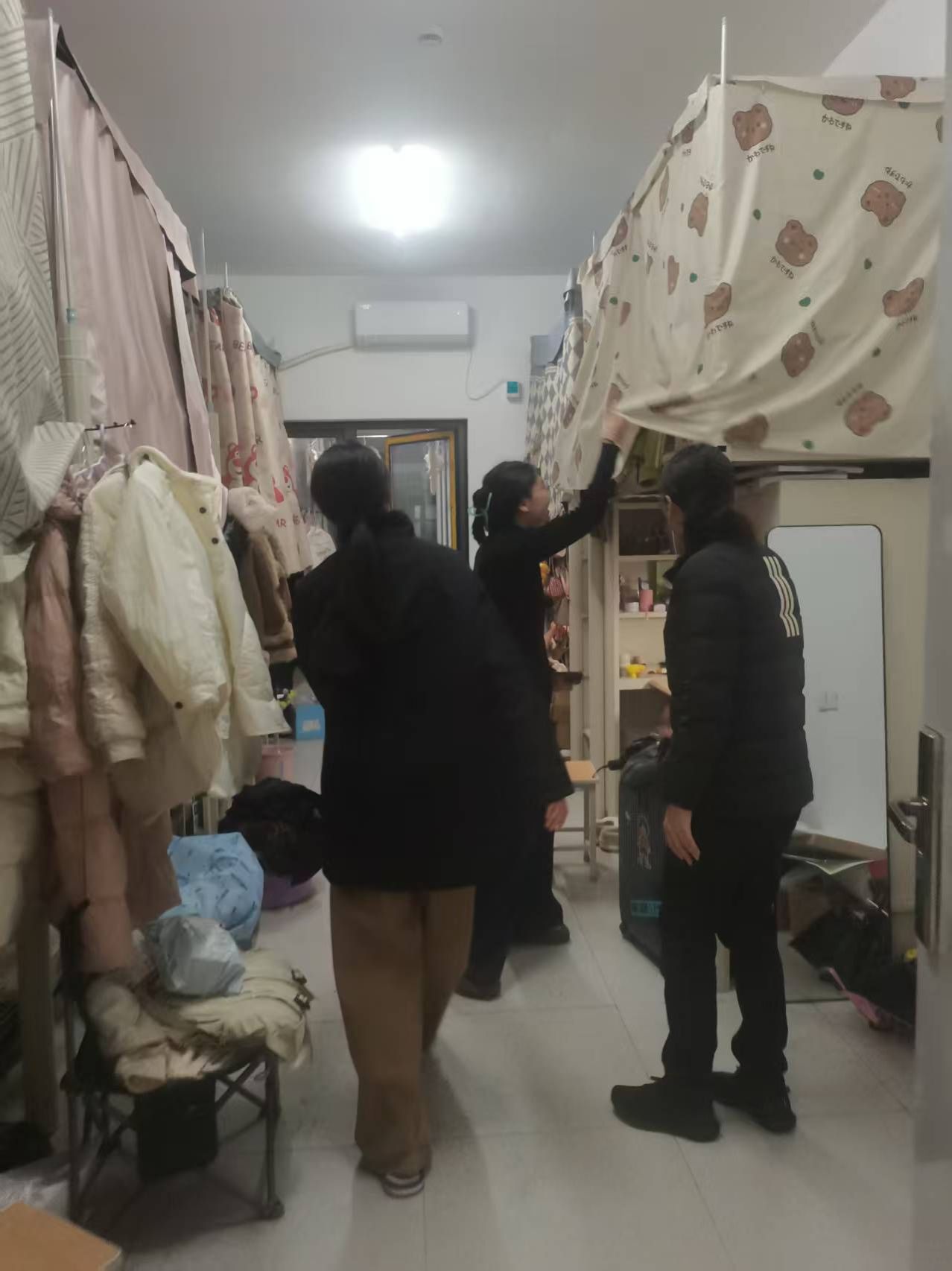 为进一步加强假期留校学生管理,切实消除宿舍安全隐患,营造安全、整洁、有序的住宿环境,11月30日晚9点,数字创意与设计学院辅导员对留校学生宿舍开展集中安全查寝行动。重点围绕用电安全、卫生状况及学生生活状态等方面进行全方位排查。