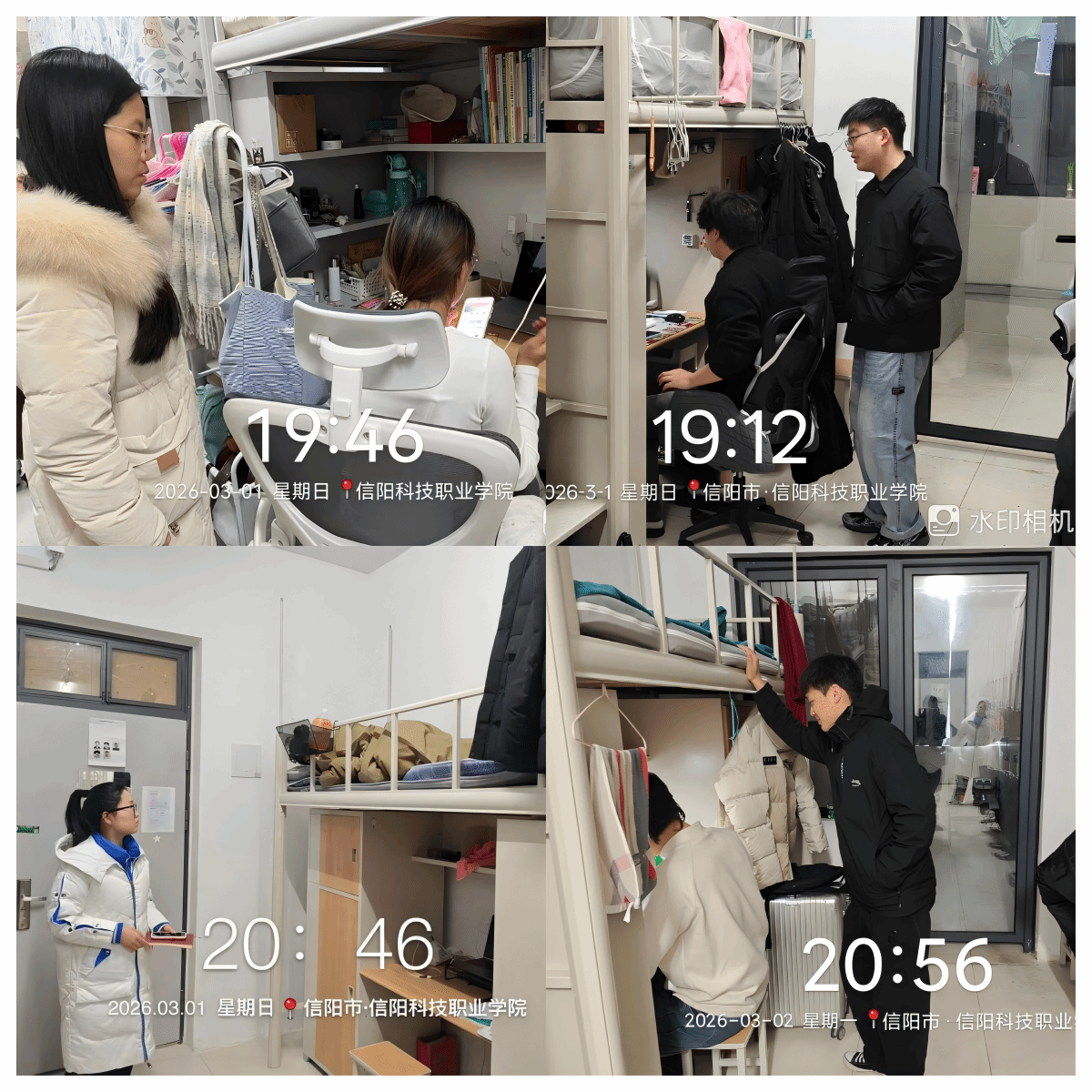 走访过程中,辅导员们重点开展了三项工作:一是精准清点人数,逐一核对返校学生名单,详细记录未返校学生的原因及预计到校时间,确保准确掌握每一位学生的动态,严格落实返校报备制度;二是送上新春祝福,提醒大家,近期正值季节交替,注意防寒保暖,预防流感,鼓励同学们从假期的休闲模式中调整过来,以饱满的热情投入到新学期的学习生活中;三是重申纪律红线,结合新学期课程安排、实践教学等,重点强调了出勤纪律和学风建设,并对宿舍管理规定进行了再宣传、再教育,重点排查了违规电器使用、私拉乱接电线等安全隐患,叮嘱大家要时刻绷紧安全弦,共同维护宿舍的整洁与文明,杜绝一切可能引发火灾或安全事故的风险点。