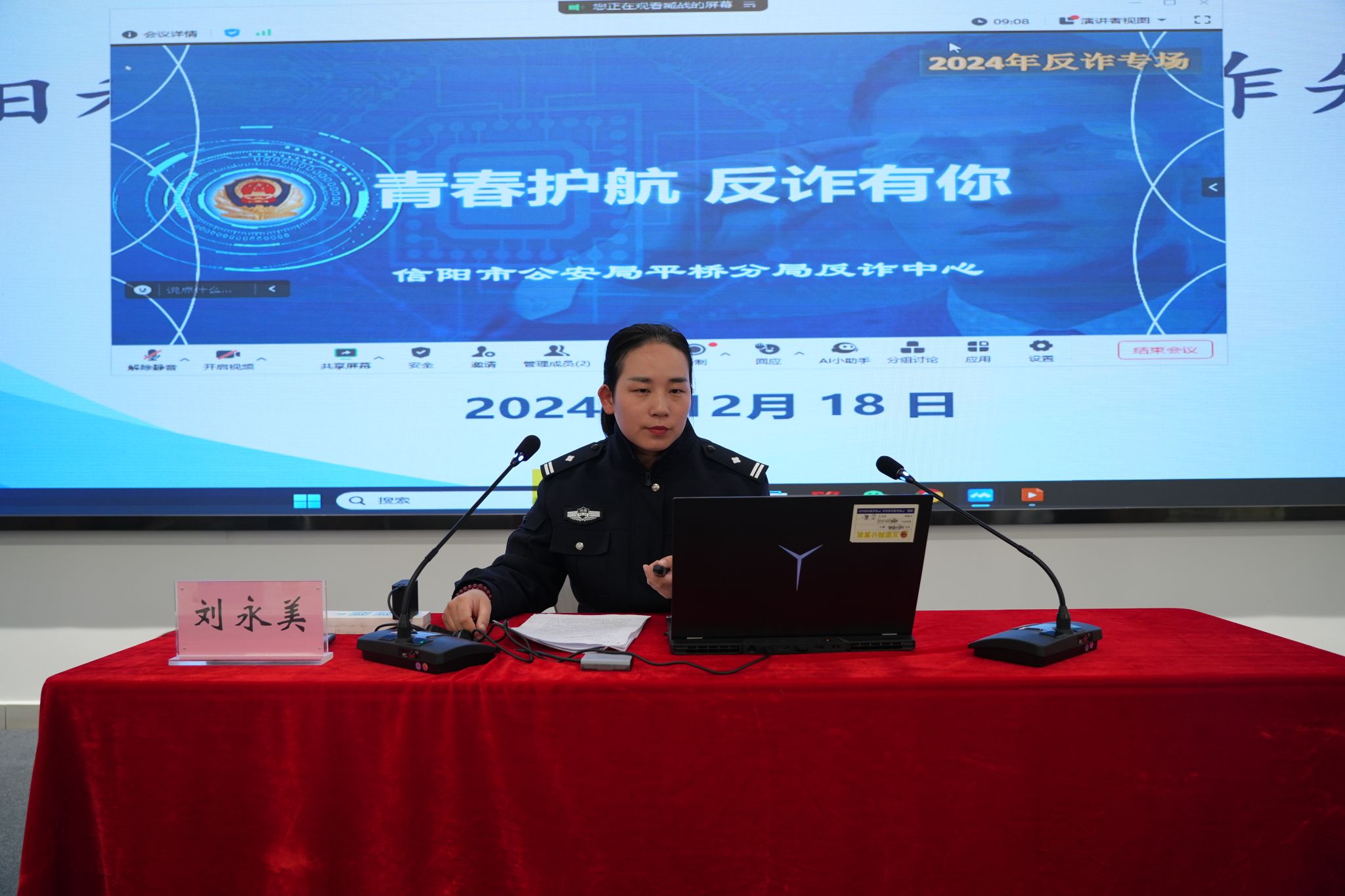 为进一步增强师生的反诈意识,提高防范电信网络诈骗的能力,切实维护校园安全稳定, 12 月 18 日,我校联合平桥区政法委、区公安分局、团区委、区广播电视台共同举办了一场反诈宣传报告,报告会由学生处臧战老师主持。本次报告宣讲人为信阳市公安局平桥分局反诈中心办公室主任刘永美。刘主任从警多年来参与破获了众多刑事案件,在打击电信诈骗犯罪领域成绩斐然。她结合自身丰富的实战经验,通过一个个真实发生在校园内外的典型电信诈骗案例,...