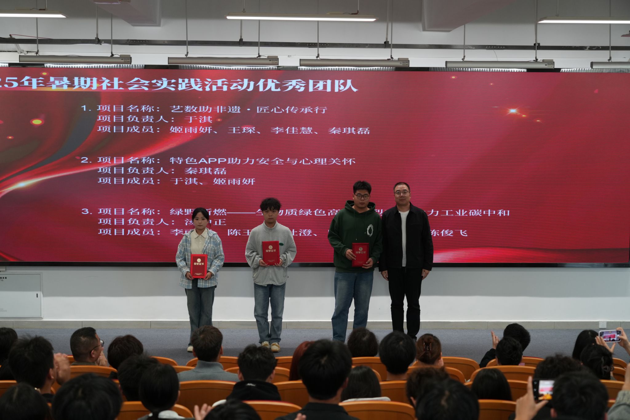 会上,学生处牛帅对《关于表彰2025年大学生暑期社会实践活动优秀个人、优秀团队的决定》和2025年河南共青团大学生“向基层报到”项目优秀参与学生名单进行宣读。