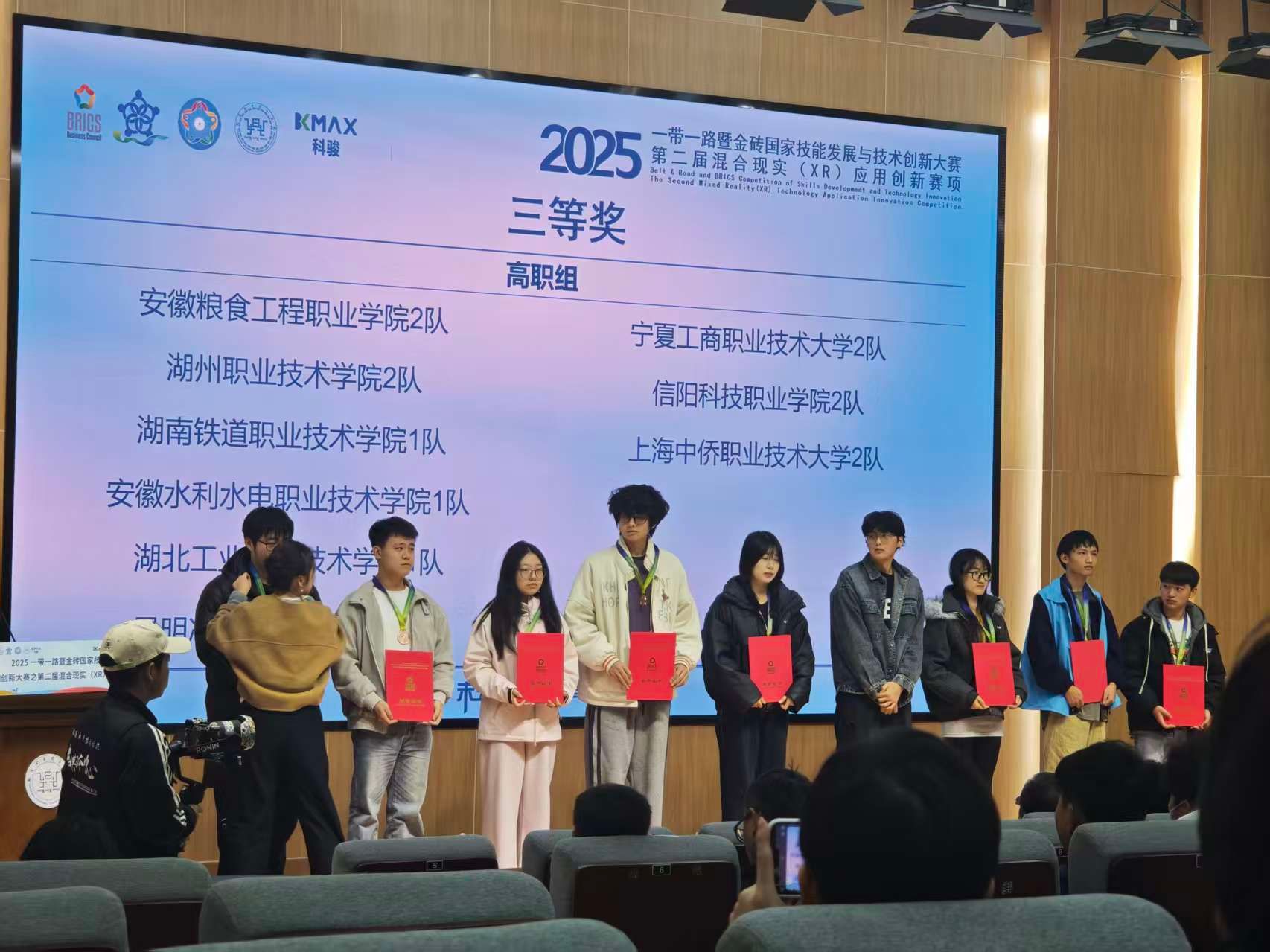 近日,由金砖国家工商理事会中方理事会、一带一路暨金砖国家技能发展国际联盟等权威机构联合主办的2025第九届金砖国家技能发展与技术创新大赛——第二届混合现实(XR)应用创新赛项全国总决赛在铜陵职业技术学院圆满落幕。经过激烈角逐,我校参赛团队凭借出色的技术应用与创新设计,荣获全国三等奖,展现了我校在虚拟现实技术教育与创新型人才培养方面的扎实成果。