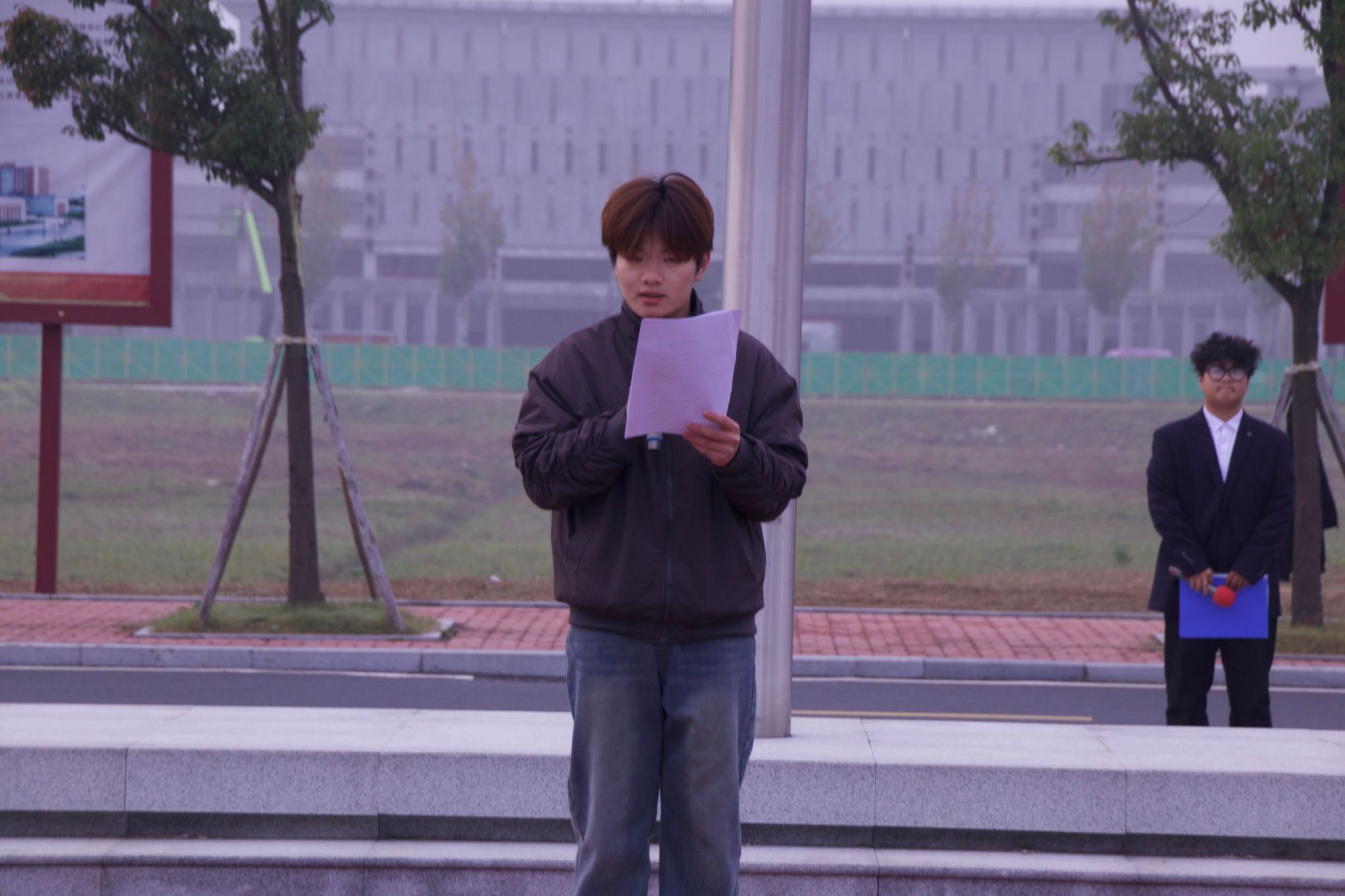 24级机电24班戚桢青同学主持升旗仪式,24级机电08班的闫宝龙发言,分享对集体主义的深刻感悟,他表示,不负学校期望,珍惜大学时光,锤炼品格、互帮互助、增长才干,争做德智体美劳全面发展的高素质技术技能人才,以实际行动践行爱国主义、集体主义精神。