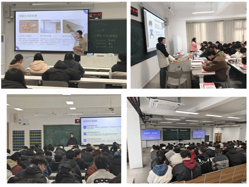 案例警示环节,各班通过播放近期国内高校及社会场所典型火灾事故视频、剖析真实案例数据,直观展示了火灾发生后的严重危害,深入分析了违规用电、疏忽大意等引发火灾的根本原因,让学生深刻认识到“消防安全无小事,防患未然是关键”。互动问答环节,辅导员提出“火灾发生时如何正确拨打119报警”“不同类型火灾应选择何种灭火器”“宿舍起火后能否乘坐电梯逃生”等实操性问题,学生们积极抢答、热烈讨论,在互动交流中巩固消防安全知识。