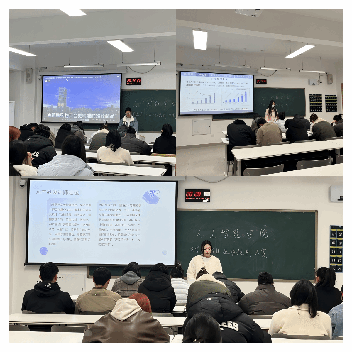 11 月 19 日晚,人工智能学院在二号楼 401 成功举办以“擘画未来,智启新程”主题大学生职业生涯规划大赛。