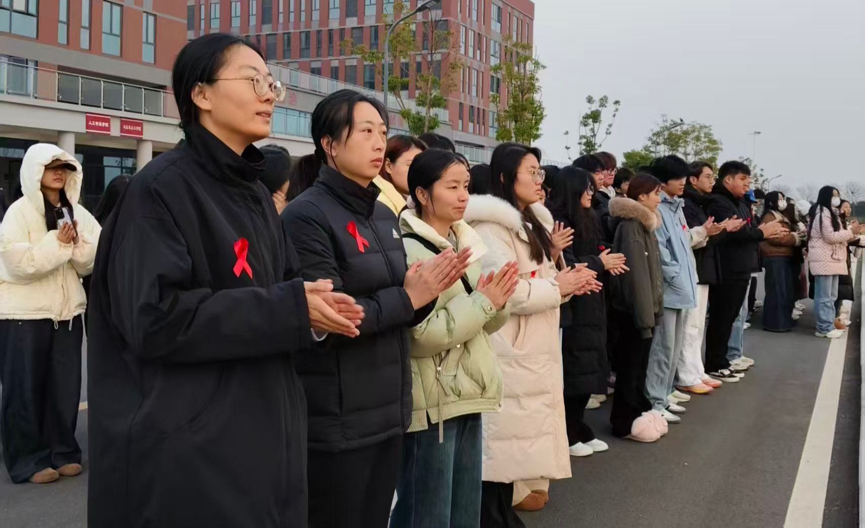 12月1日清晨,在凛冽而清新的冬日空气中,我校智慧电商学院和数字创意与设计学院师生齐聚升旗广场,隆重举行第38个“世界艾滋病日”主题团日活动。与往日不同,本次活动现场涌现出一片温暖的“红色海洋”——每一位师生的胸前都整齐地佩戴着一条鲜艳的红丝带,成为此次活动中最动人、最鲜明的符号。
