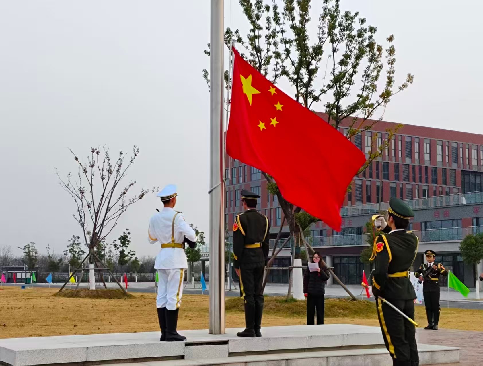 红丝带飘扬,誓言在国旗下回响
